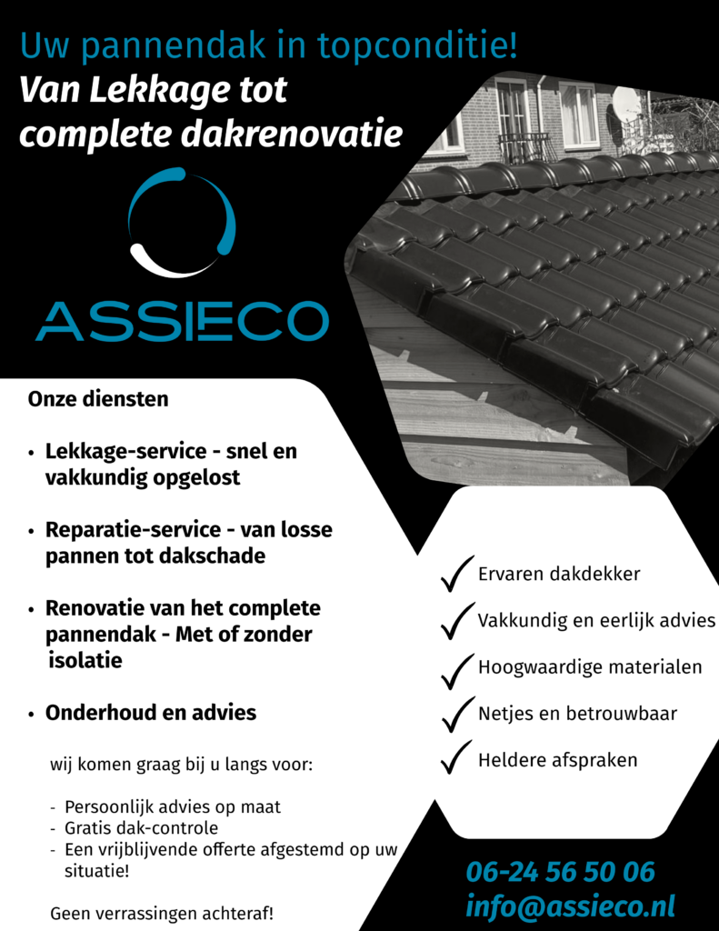 Bij Assieco zijn we gespecialiseerd in het renoveren van pannendaken, met of zonder isolatie. Of het nu gaat om het vernieuwen van uw complete dak of het herstellen van schade of lekkage, wij zorgen voor vakwerk tot in de nok!